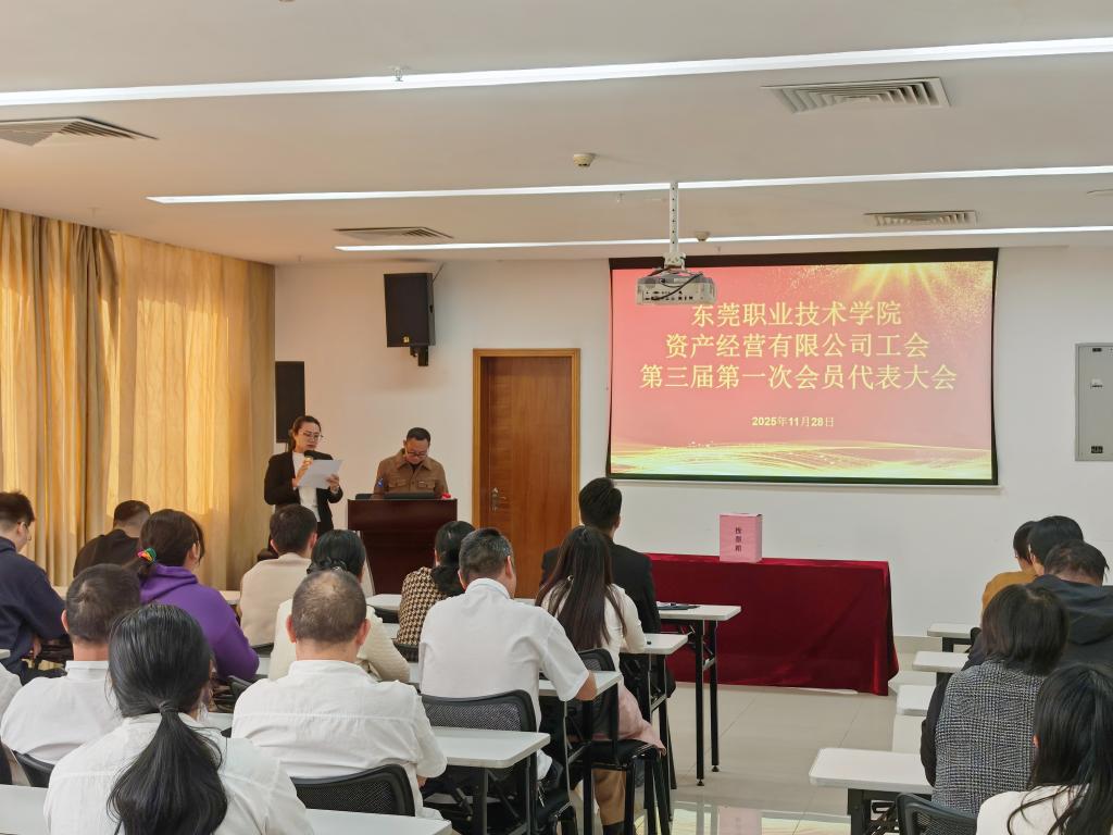 11月28日下午,东莞职业技术学院资产经营有限公司工会第三届第一次会员代表大会隆重举行。来自公司各部门的会员代表齐聚一堂,肩负全体职工的重托,共商工会发展大计,圆满完成各项议程并顺利选举产生新一届工会委员会。